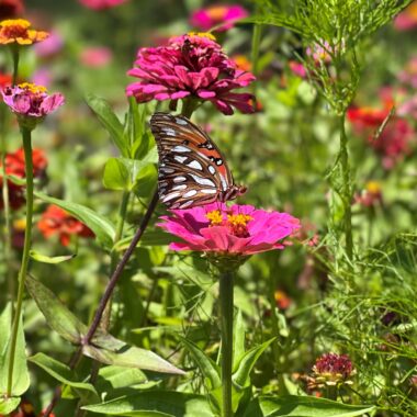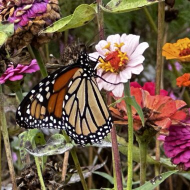Many butterflies are attracted to Zinnias’ colorful blooms and will feed on the easy-to-access nectar.