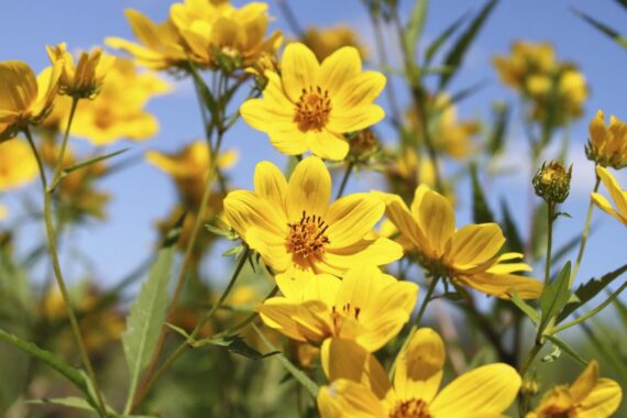 Late Summer – Fall — Spotted Beebalm, Purple Coneflower, Bur Marigold, Narrow-leaved Sunflower