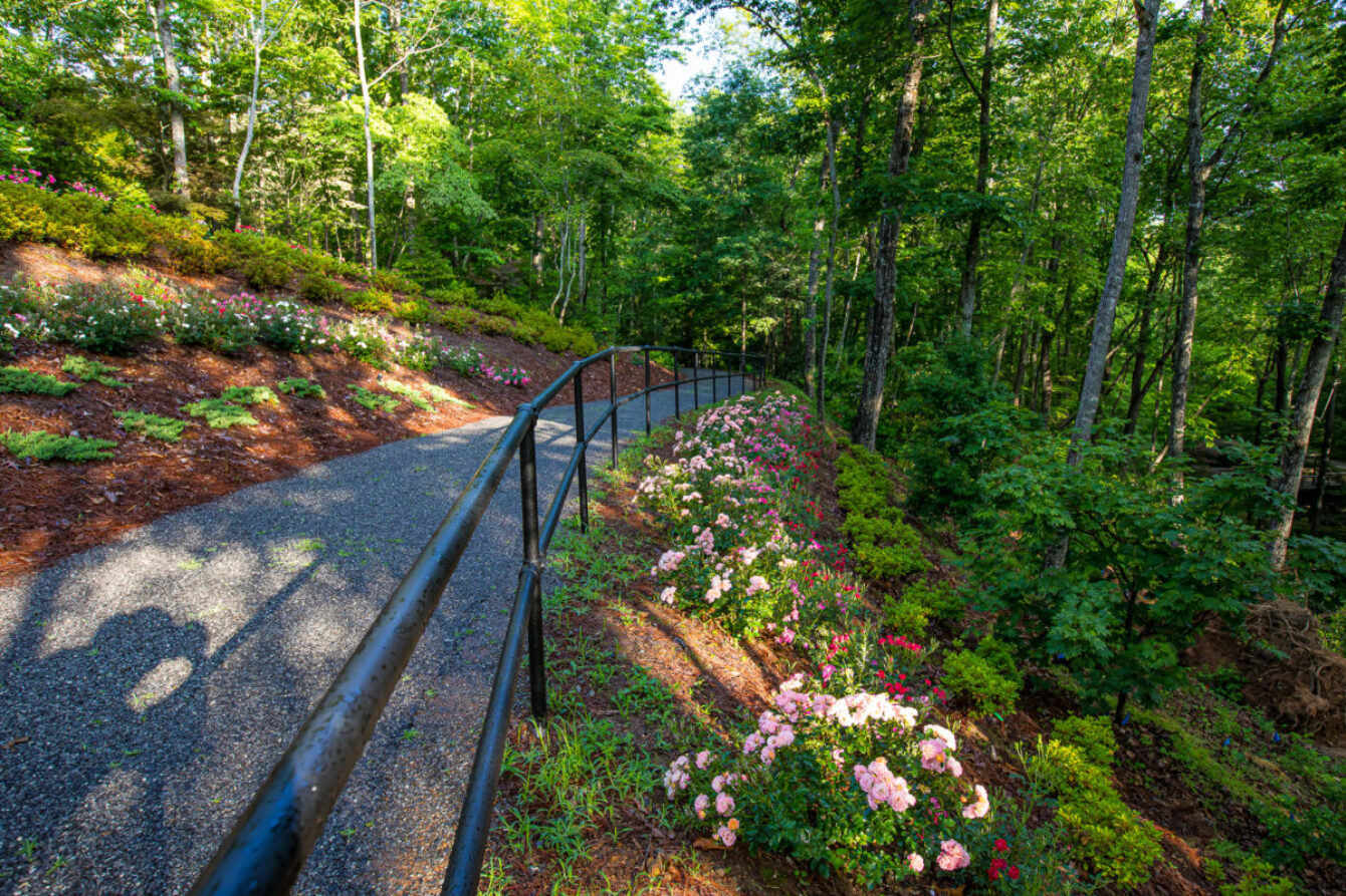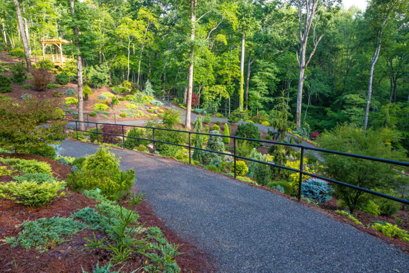 “How are people best able to meander and really enjoy a beautiful space? That’s the first consideration,” he said. “The walkways are what guide visitors through the garden; they provide the perspective or angle of the view. Our walkways follow the topography, which ensures more gentle level paths for visitors,” Gibbs explained. Because of the elevation Gibbs added handrails throughout the garden to add to visitors’ comfort.