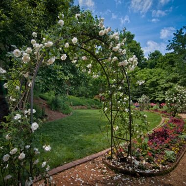 When visiting the gardens in spring, summer and fall, masses of roses are a stunning element of the design. Roses begin blooming in May and continue until the first heavy frost.